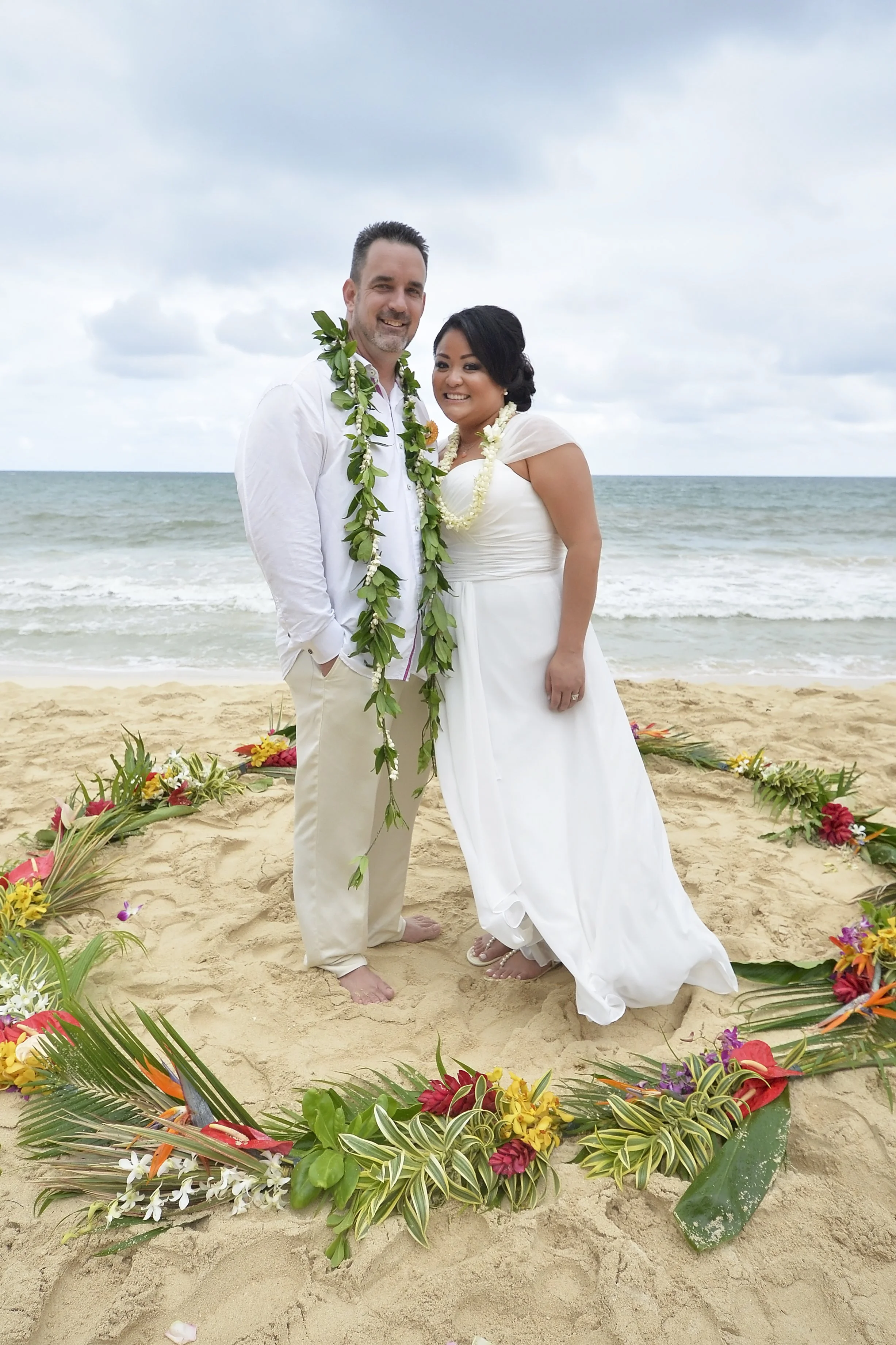 5. The Flower Circle. Since we are not legally allowed to altars and arches at Hawaii beaches we have found another way to fancy up the altar with flowers. The Flower Circle is a large altar made up of bright Hawaiian flowers. The bride, groom and officiant will stand in the circle during the ceremony and the guests will stand around it. This is a fun option to bring a little color into the ceremony site and make the space feel more intimate. Pricing varies, and will be given per quote based on floral availability and cost at the time of ordering.