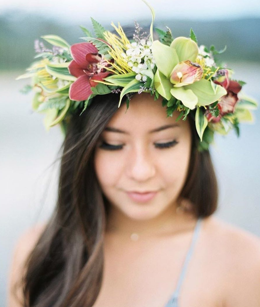 3. Add a Haku Lei for the bride, bridesmaids and flower girls. A Haku Lei is a handmade floral head lei designed by the florist to match the bouquet(s). See sample photos below for inspiration. Cost will vary depending on the size, type of florals and design.