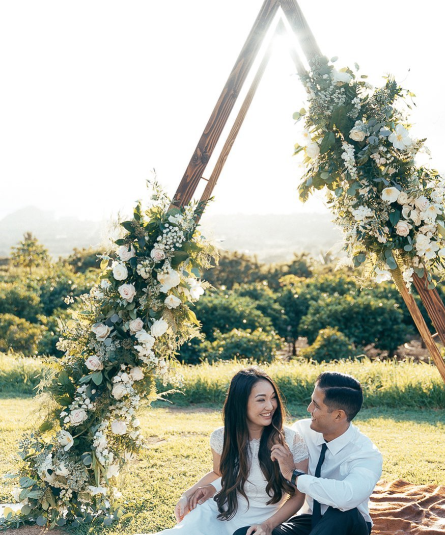 Floral altars are set up right before your wedding by a professional floral designer. We carry in the altars, set up the florals and fabric for you. You will be quoted on the custom florals and setup fees. After the ceremony you may take the florals with you or if you do not want them we do donate flowers to the Senior Care Homes around Honolulu. You can read more about that service here.