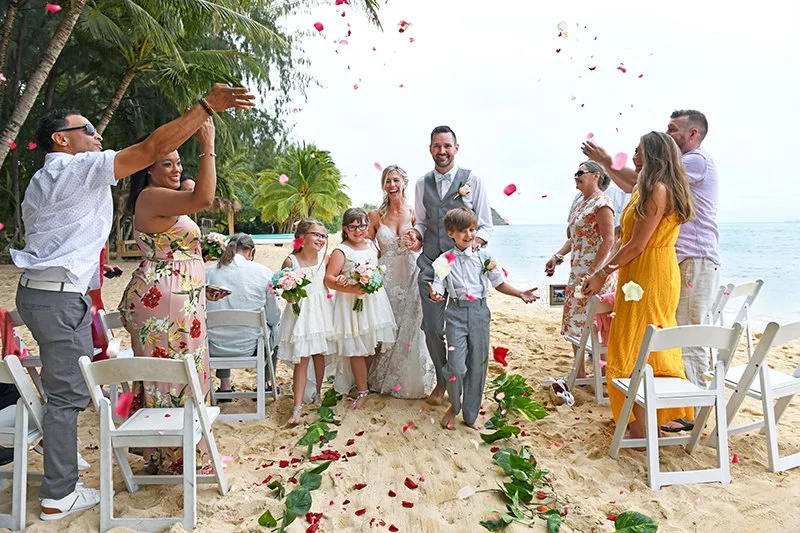 5. Add a Haku Lei for the bride, bridesmaids and flower girls - or just the bride! A Haku Lei is a handmade floral head lei designed by the florist to match the bouquet(s). See sample photos below for inspiration. Cost will vary depending on the size, type of florals and design.